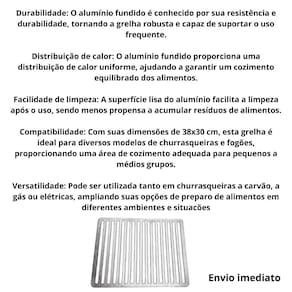 Uma grelha parrilha em alumínio fundido com dimensões de 38x30 centímetros oferece uma série de vantagens para a preparação de alimentos: