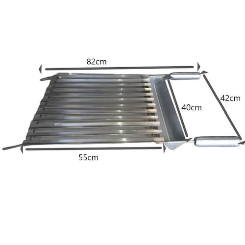 A grelha argentina é constituída por canaletas, normalmente no formato V e possui leve inclinação que evita que a gordura ou sumo da carne entrem em contato com o fogo e cause labaredas. Logo, é possível assar a carne bem próximo ao fogo.