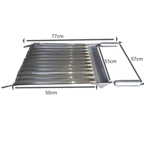A grelha argentina é constituída por canaletas, normalmente no formato V e possui leve inclinação que evita que a gordura ou sumo da carne entrem em contato com o fogo e cause labaredas. Logo, é possível assar a carne bem próximo ao fogo.