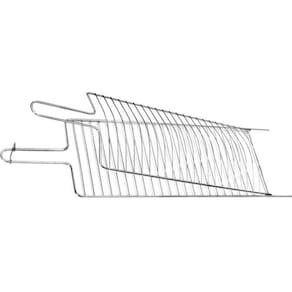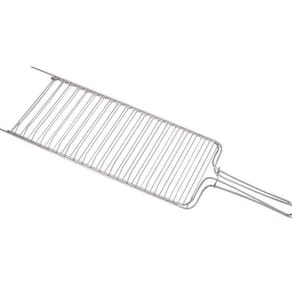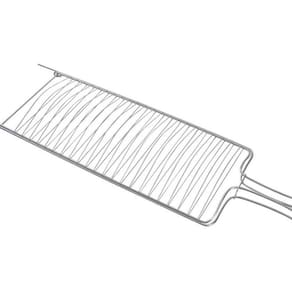 Churrasco é uma linguagem universal, em qualquer lugar do mundo é sinônimo de alegria e confraternização. Um dos melhores alimentos é o peixe, pois além de leve é muito mais saudável e nutritivo. Tenha toda a praticidade no preparo do seu peixe com essa grelha dupla fabricada em aço cromado. Muito usual também para assar pão de alho, legumes e outros tipos de carnes em geral. Totalmente em aço cromado, possui fechamento seguro, com presilha de segurança. O formato do cabo permite pendurar facilmente após o uso. A grelha é munida de duas pontas permite assar em qualquer tipo de churrasqueira. Dicas de limpeza: evite o uso de abrasivos para conversar o brilho em sua grelha de aço cromado. A grelha, por ser de aço cromado, deve ser muito bem higienizada após o uso, bem como secar totalmente, deixando livre de umidade. Armazene-a em local seco e arejado. Cuidados assim, manterão sua grelha sempre linda e livre de pontos de oxidação, causados pela umidade e o sal. Medidas e peso aproximados - comprimento total: 68 cm - largura: 20 cm - largura entre os arames: 2 cm - peso: 704 gr - comprimento do cabo: 17 cm Madefer