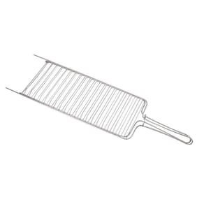 Grelha dupla para churrasqueira peixes frango 68cm madefer Grelha peixe light - cromado cod688 madefer Churrasco é uma linguagem universal, em qualquer lugar do mundo é sinônimo de alegria e confraternização. Um dos melhores alimentos é o peixe, pois além de leve é muito mais saudável e nutritivo. Tenha toda a praticidade no preparo do seu peixe com essa grelha dupla fabricada em aço cromado. Muito usual também para assar pão de alho, legumes e outros tipos de carnes em geral. Totalmente em aço cromado, possui fechamento seguro, com presilha de segurança. O formato do cabo permite pendurar facilmente após o uso. A grelha é munida de duas pontas permite assar em qualquer tipo de churrasqueira. Dicas de limpeza: evite o uso de abrasivos para conversar o brilho em sua grelha de aço cromado. A grelha, por ser de aço cromado, deve ser muito bem higienizada após o uso, bem como secar totalmente, deixando livre de umidade. Armazene-a em local seco e arejado. Cuidados assim, manterão sua grelha sempre linda e livre de pontos de oxidação, causados pela umidade e o sal. Medidas e peso aproximados - comprimento total: 68 cm - largura: 20 cm - largura entre os arames: 2 cm - peso: 704 gr - comprimento do cabo: 17 cm Madefer Marca: Não Informado Ean: 7898901928614