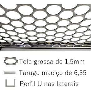 A Tela e estrutura são em Inox e por isso não enferrujam, material de qualidade proporcionando alta durabilidade.