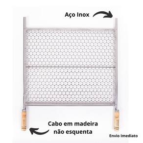 Grelha Inox Moeda Para Churrasco 60X50 Cabo De Madeira