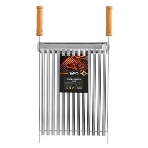 Maravilhosa grelha Parrilla Argentina foi toda produzida em aço inox, material super resistente. Possui cabos de madeira banhado em verniz de alta durabilidade, canaletas em formato V, com leve inclinação e calha removível para facilitar na hora da limpeza. E, tudo isso, pensando exclusivamente em garantir o preparo de um delicioso churrasco para você e seus convidados. Além de tudo isso trata-se de uma linda peça. Dimensões do Produto CxLxA (cm): 40cm x 40cm x 5cm. Peso 1,15kg