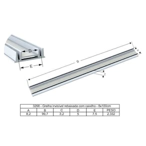 01 Grelha Invisível Oculta Rebaixado com Caixilho Bege 100x8cm.