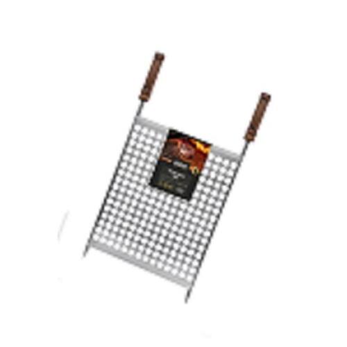 Qualidade é o que importa na hora de lidar com seus apetrechos de churrasco. A grelha moeda em inox é o que você precisa na sua área gourmet. Ideal para assar todos os tipos de carnes, não enferruja e muito fácil de limpar. A Grelha possui um excelente acabamento, solda de qualidade e cabo de madeira. Acabamento em alto brilho. Ela conta com recortes circulares que em contato com o calor do fogo deixar marcas características tradicional da tela moeda. As laterais contam com abas modelo bandeja , e evita que alimentos menores caiam. Marca: Não Informado