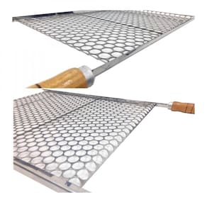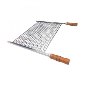 Grelha Moeda Inox 40x48 Para Churrasco Cabo Madeira E Ponteira