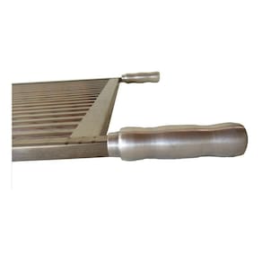 Descrição do Produto : Material paletas e estrutura: Inox 430 Cabo: madeira revestida de alumínio 60cm de largura x 48cm profundidade util de área da grelha 67cm total comprimento Tem ponta para churrasqueiras de tijolinhos nos fundos, mas não serve para suporte suspenso, pontas tipo cantoneira. Cabos robustos ultrapassam a largura da grelha 2cm cada lado - largura com cabos chega 64cm