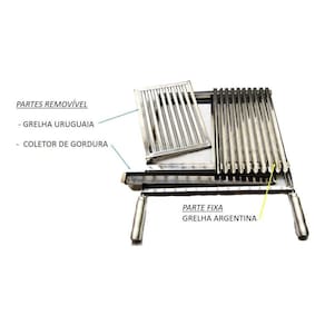 Com essa grelha vai fazer um churrasco de sucesso A grelha mista argentina e uruguaia terá tudo numa só grelha, assando a picanha com a argentina , com o sistema de canaletas que mantém o suco da carne e mantém o sabor do seu churrasco, acoplado a grelha uruguaia para ficar tudo completo .