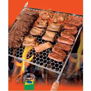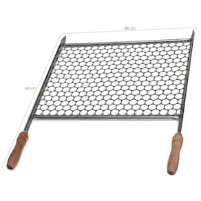 Grelha para Churrasqueira 64x48cm Moeda Aço Inox 430 com Cabos de Madeira Grande Utimil.