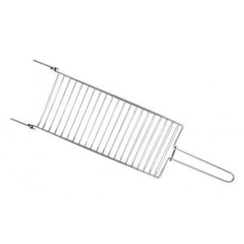 Grelha para peixe cromada 39x20cm. Medidas de area de fogo Composição do produto Estrutura em arame e acabamento cromado. Composição do produto estrutura em arame e acabamento cromado. Embalagem individual plástica dimensões emb. Ind. m : 0,732 x 0,224 x 0,033 informações adicionais modo de usar recomenda-se antes do primeiro uso limpar a grelha com água e sabão neutro. Limpe a grelha após o uso para retirar os resíduos de sal, gordura e carne que sobraram, desta forma aumentando a durabilidade / resistência do produto. Aproveite o resto do calor de sua churrasqueira para secá-la. Nunca guarde a grelha com o cabo de madeira úmido, pois o mesmo poderá mofar . Para a limpeza da grelha, não se recomenda a utilização de esponja de aço. Produto sem embalagem dimensões m : 0,725 x 0,210 x 0,025 peso do prod. kg : 0,532 Ean: 7896020631057