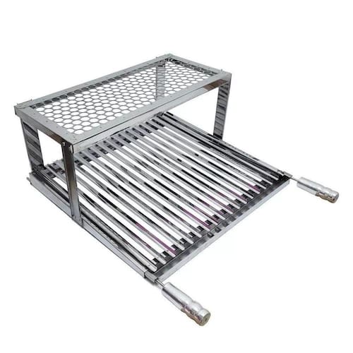 Grelha argentina com descanso Grelha argentina parrilla fabricada em aço inox. Possui lateral fechada que aumenta a resistência da grelha não entortando com peso e calor.