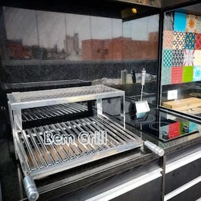 A grelha argentina é ideal para churrasqueira de alvenaria.