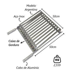 01 Grelha Parrilha Argentina Aço Inox com Caixa Gordura 50x50cm.