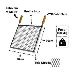 Grelha Quadrada Inox Tela Moeda Para Churrasqueira 50x50cm