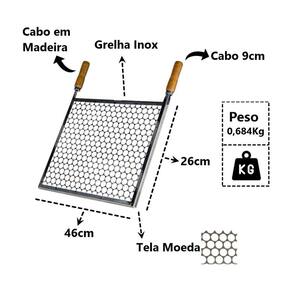 Grelha Retangular Inox Tela Moeda Para Churrasqueira 46x26cm