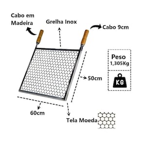 Grelha Retangular Inox Tela Moeda Para Churrasqueira 60x50cm, existem diferentes opções de grelha para churrasqueira, algumas servem apenas como superfície, já outras permitem prender os ingredientes, facilitando o trabalho na hora de virar os alimentos. A grelha é a preferida de muita gente na hora de fazer o churrasco, pois a carne é assada por inteiro e não perde os seus sucos, ficando mais suculenta.
