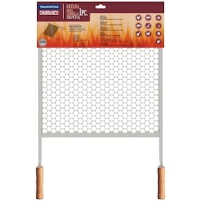 Grelha Tramontina Churrasco 83,5x47,1cm Em Aço Inox E Cabo De Madeira Churrasqueiro bom é aquele que atende a todos os gostos. Carnes e legumes grelhados são unanimes: todo mundo Nada melhor que um belo churrasco para reunir amigos ou familiares. Então para o churrasqueiro fazer bonito e agradar a todos ele precisa ter a Grelha Aço Inox. Recomendações de Uso: Antes do Uso: Remova as ponteiras de proteção e lave a grelha usando apenas esponja e detergente ou sabão neutro, de uso: Não sobrecarregue a grelha, pois isso pode provocar deformações no produto. Retire o alimento com auxílio de um utensílio. É importante que a limpeza seja realizada imediatamente após o uso e que não permaneçam resíduos de alimentos na grelha. Caso o alimento esteja aderido, recomendamos o uso de escovas com cerdas de aço Tramontina que irão facilitar a limpeza. Sempre lave usando esponja e detergente ou sabão neutro. Seque a grelha imediatamente após a lavagem para evitar aparecimento de manchas. Ao utilizar utensílios quentes, tenha cuidado redobrado. Se necessário utilize proteção para as mãos e mantenha-os fora do alcance das crianças. Informações Adicionais: