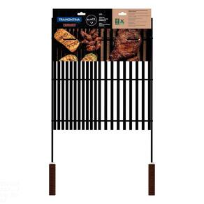 Se você é daqueles churrasqueiros que gostam de variar e levar para seus convidados diversas opções, como legumes grelhados e carnes com pontos diferentes, a grelha Tramontina Churrasco Black em aço carbono nitrocarbonetado com cabos de madeira é perfeita. Produzida em aço carbono nitrocarbonetado com exclusivo processo Durprotect, ela tem maior resistência a abrasão e reduz a possibilidade de corrosão, sendo assim, de maior vida útil. Ela pode ser exposta a altas temperaturas e é plana, sendo metade da área útil com barras próximas e metade com barras espaçadas, características que permitem o preparo de alimentos diversos simultaneamente. Seu churrasco não será mais o mesmo com a Grelha Tramontina! Orientações Versátil para diferentes tipos de alimentos.Grelha de aço carbono nitrocarbonetado.Grelha multiuso plana, sendo metade da área útil com barras próximas e metade com barras espaçadas, que permite o preparo de alimentos diversos de forma simultânea.Grelha produzida com o exclusivo processo Durprotect! Maior vida útil para sua grelha. Maior resistência a abrasão e corrosão. Permite altas temperaturas.Cabos de madeira. Características Gerais EAN13 7891112299023 DUN14 17891112299020 NCM 7323.99.00 Peso Líquido 2,8900 kg. Peso Bruto 2,9800 kg. Metragem 0,008566 m³. Dimensões Embalagem (Compr. X Larg. X Alt.) 423x 27x 750 mm. Dimensões Produto (Compr. X Larg. X Alt.) 441x 412x 27 mm. Observações Ao utilizar utensílios quentes, tenha cuidado redobrado. Se necessário, utilize proteção para as mãos e mantenha-os fora do alcance das crianças. Antes de usar: Lave a grelha usando apenas esponja e detergente ou sabão neutro. Durante o uso: Retire o alimento com o auxílio de um utensílio. Limpeza: É importante que a limpeza seja realizada após cada uso e que não permaneçam resíduos de alimentos na grelha. Sempre lave usando esponja e detergente ou sabão neutro. Não utilize em máquinas de lavar. Caso o alimento esteja aderido, recomendamos o uso de escovas com cerdas de aço Tramontina que irão facilitar a limpeza. Seque a grelha após a lavagem para evitar o aparecimento de manchas. Em seguida aplique uma fina camada de óleo de cozinha, a qual tem a função de proteger contra a corrosão. Armazene em local seco. Obs.: Ao longo do uso, poderão aparecer pontos de oxidação (ferrugem), o que é perfeitamente normal em produtos fabricados em aço carbono. Para descarte do produto e embalagem siga as orientações de reciclagem vigentes.