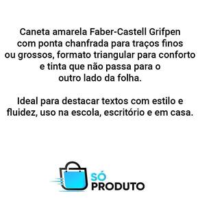 Descrição Com a grifpen amarelo faber castell, sua escrita ficará ainda mais fluida e seus textos terão destaque garantido. Possui ponta chanfrada para traços finos e grossos, além de formato triangular para maior conforto ao escrever. Sua tinta é superfluorescente e não passa para o outro lado da folha.