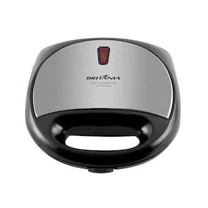 Grill e Sanduicheira Britânia Crome Inox/Preto com potência de 750W, chapa antiaderente e base antiderrapante.Funciona como grill