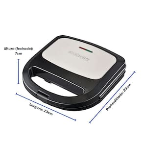 Design moderno em aço inox, chapas antiaderentes, aquecimento rápido, sistema de fechamento.Termostato regulável