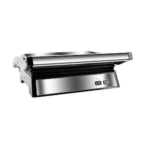 Chapa superior ajustável com abertura de 180º; Base Antiderrapante; Chapa Antiaderente; Coletor de gordura; LED Indicador de Funcionamento; Abertura de 180°; Revestimento antiaderente Maxx Clean; Bandeja coletora de gordura; Luz indicadora de aquecimento; Placas com revestimento com antiaderente; Placas de aquecimento com ajuste de altura; Acabamento em inox;Grill e Sanduicheira Philco PGR21PI Maxx Clean Inox / Preto - 127V