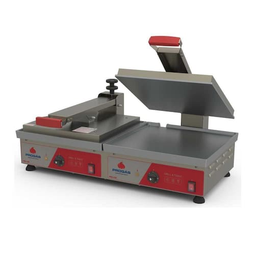 - Aquecimento inferior e superior através de resistências elétricas blindadas e controladas por termostato; - Estrutura em aço inox escovado; - Lâmpada Piloto indicando a função liga e desliga a resistência; - Coletor de gordura que facilita a higienização; - Chapas em alumínio fundido; - Pés antiderrapantes; - Regulagem de abertura da presa pão; - Sistema que mantém a prensa pão elevada, quando a mesma estiver aberta.