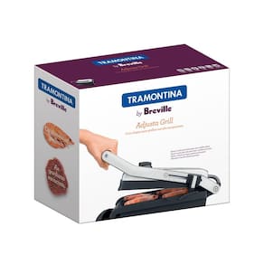 Grill Elétrico Aço Inox Adjusta 127v TramontinaTR69034/011Tensão: 127V Frequência: 60 Hz Potência: 1500WDescrição: Grill elétrico de aço inox fosco retangular. Produto certificado conforme Sgs Ocp0040 Segurança Compulsório InMetro.Orientações GeraisAntes de usar, leia cuidadosamente todas as instruções do manual e guarde-o para consultas futuras. Remova e descarte com segurança todos os materiais da embalagem e etiquetas promocionais antes de usar o aparelho pela primeira vez. Não coloque o grill perto das bordas do balcão ou da mesa durante a sua utilização. Assegure-se de que a superfície esteja nivelada, limpa e livre de água e outras substâncias. Não use o grill dentro da cuba da pia. Posicione o grill a uma distância mínima de 20 cm de paredes, cortinas, tecidos e outros materiais sensíveis ao calor. Sempre use o grill em superfícies estáveis e resistentes ao calor. Não o utilize sobre superfícies cobertas com tecidos ou perto de cortinas ou outros materiais inflamáveis. Antes do uso, sempre se assegure de que o grill esteja montado corretamente. Siga as instruções fornecidas no manual. O aparelho não deve ser operado por meio de timers externos ou sistema separado de controle remoto. A tampa e a superfície externa atingirão temperaturas altas durante o funcionamento do eletrodoméstico. Quando o aparelho estiver em funcionamento e algum tempo após o seu uso, as superfícies acessíveis estarão quentes. Não coloque outros objetos sobre o grill quando a tampa estiver fechada, quando ele estiver em uso e quando estiver armazenado. Antes de limpar, movimentar e guardar o aparelho, ou se ele não estiver em uso, sempre coloque o botão de controle de temperatura variável na posição Sandíche, desligue o grill da tomada, desconecte o cabo de alimentação e deixe o aparelho esfriar completamente. Mantenha o grill limpo. Siga as instruções de limpeza fornecidas no manual.Benefícios do Produto1. Chapa superior articulada flutuante ajusta-se a carnes frutos do mar, verduras e sanduíches de todas as espessuras. 2. Controle de temperatura variável, projetada para selar carnes em minutos ou tostar sanduíches gourmet como nos cafés. 3. Chapas exclusivas com angulação para redução da gordura. 4. Resistência de alta temperatura para aquecimento rápido e veloz. 5. Chapas de cozimento antiaderentes duráveis. 6. Bandeja de gotejamento removível pode ser utilizada em lava-louça. 7. Luzes 'Ligar/Desl.' e 'Pronto' integradas indicam quando o grill está aquecendo ou quando está pronto para uso. 8. Braços em metal fundido de alta resistência para durabilidade, força e estilo. 9. Pés antiderrapantes.
