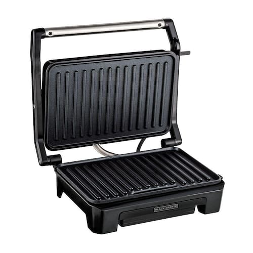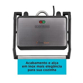 Grill Elétrico Panini Black Decker Prensa G1200-BR 800w - Inox/Preto - 110V Grill Elétrico Panini Black Decker Prensa G1200-BR 800w - Inox e Preto - 110VPrepare deliciosos grelhados e sanduíches de forma mais saudável e prática com o Grill Black Decker Panini G1200. Ele conta com alguns diferenciais, como sua prensa articulável, que torna o preparo de diversos tipos de alimentos muito mais prático, bandeja coletora de gordura que garante alimentos mais saudáveis, e ainda, possui alça em inox que proporciona mais higiene durante seu uso, e maior segurança.Além disso, o Grill Elétrico Black Decker tem chapas antiaderentes, que não grudam o alimento e são muito mais fáceis de limpar, e 800w de potência.Vantagens do Grill Elétrico Panini Black Decker com Prensa G1200 Prensa articulável; Bandeja coletora de gordura; Alça em inox.Especificações: Modelo: G1200 Chapas antiaderentes; Prensa articulável; Tampa com acabamento em inox; Caixa coletora de gordura; Luz indicadora de aquecimento; Potência 800wDimensões: Altura: 26cm Largura: 13cm Comprimento: 30cm Peso: 2,1kgCor: Preto - Voltagem: 110V Garantia de 12 meses contra defeitos de fábrica.