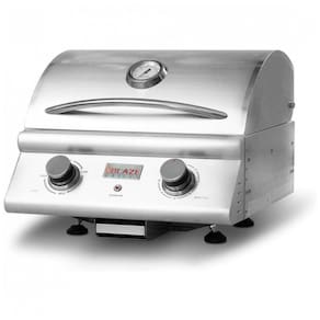 Grill elétrico portátil Blaze com temporizador, temperatura ajustável, 1500W, alças e bolsa para transporte, pés ajustáveis, rack para aquecimento, bandeja de gotejamento removível.Termostato regulável