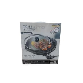 Design moderno e compacto, formato redondo de 40 cm de diâmetro. Superfície antiaderente. Bandeja coletora de gordura com água. Controle de temperatura ajustável.Termostato regulável