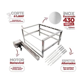 Churrasqueira Grill Giratório 5 Espetos de Inox Motor Removível Embutido Issi Grill