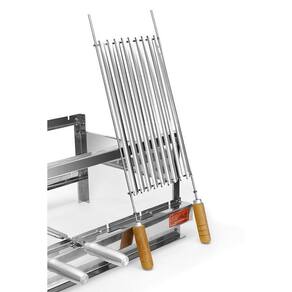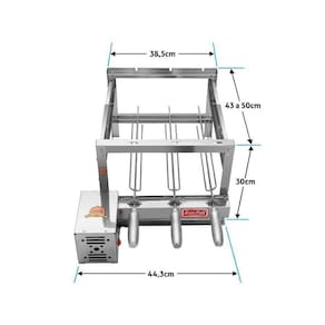A SantiGrill lançou o Grill com Espetos Giratórios, ideal para adicionar um toque especial ao churrasco, tenha maior agilidade, maior produtividade, asse a carne de maneira uniforme, deixando-a mais saborosa, pois o suco da carne gira em torno dela, evitando que a carne seque, sirva os convidados sem aquela constante preocupação em queimar seu churrasco. O Grill com Espetos Giratórios SantiGrill, vai com uma GRELHA PARRILHEIRA, tem um motor bivolt, todo produzido em aço inox, pratico e fácil de limpar. É o mais silencioso e com melhor acabamento do mercado, com ajuste de profundidade, vai ficar perfeito na sua churrasqueira ou na sua bancada de alvenaria. Detalhes: O produto vai pré-montado; Sem ponto de soldas; Itens incluídos: Três espetos Tridentes (madeira revestida com alumínio, conforto para não esquentar as mãos); Uma Grelha Parrilheira. Medidas do Grill montado: L 44,3 cm dianteira com motor, parte traseira 38,5 cm P 43 a 50m (ajustável) A 30 cm 100% Aço Inox; Motor Bivolt.