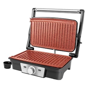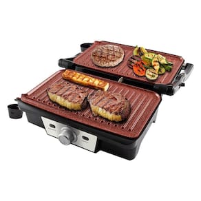 Características Adicionais: Chapas com Revestimento Antiaderente Cerâmico ¿Redstone¿ Chapa Tipo Grill Seletor de Temperatura Tamanho da Chapa: 25 x 17cm Luz Indicadora de Funcionamento - Vermelha Luz Indicadora de Aquecimento – Verde Chapa Superior se Ajusta Conforme Espessura do Alimento Acompanha Dois Coletores de Gordura Abertura 180° Alça de Inox com Toque Frio Acabamento em Aço Inox Pés Antiderrapantes