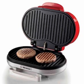 Grill Ariete Retrô Party Time para sanduíches e hambúrgueres, com placas antiaderentes duplas, design compacto e alta potência.Termostato regulável