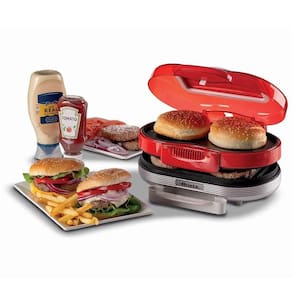 É hora de aquecer e grelhar seus sanduíches e hambúrgueres com o Grill Burguer Retrô Party Time. Este item é perfeito para tornar os encontros em família ainda mais diidos. O Grill possui placas antiaderentes duplas: uma placa para grelhar e uma placa superior para aquecer seus sanduíches. Com ele, você pode preparar 2 hambúrgueres ao mesmo tempo, utilizando o prato inferior e superior do produto.