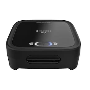 Chapas antiaderentes e mais profundas com 80% mais espaço. Chapas superior com grill e inferior lisa. Botão liga/desliga com LEDs indicadores. Pés antiderrapantes.Termostato regulável