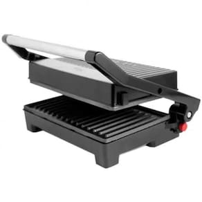 Chapas de qualidade Com as chapas antiaderentes e ondulas fica fácil de fazer a limpeza. O Grill ainda possui uma trava de abertura de 180 graus Celsius permitindo que seja utilizada tanto como Grill quanto com sanduicheira.