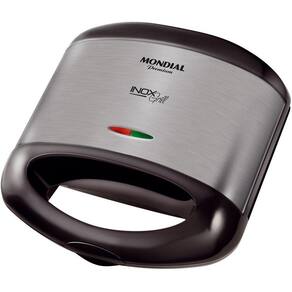 Grill/sanduicheira Mondial S-07 Retangular - 850W 220V Informações do produtoGrill/sanduicheira Mondial S-07 Retangular - 850W Um dos primeiros passos para cuidar da saúde é ter uma alimentação mais saudável, e para isto acontecer, precisamos recorrer à produtos que nos trazem praticidade e qualidade de vida. E sabendo disso a Mondial apresenta a sanduicheira/grill retangular S-07. Com potência de 850 Watts você pode grelhar diversos tipos de alimentos. E tudo isso sem uso de óleo, pois conta com chapa antiaderente que evita que os alimentos grudem. Prepare deliciosos pratos de forma prática e rápida com essa Sanduicheira/Grill da Mondial. Informações técnicasMarcaMondialReferênciaS 07.ModeloS-07Formato: RetangularPotência: 850 Watts.Cor: PretoPrepara: Sanduíches e grelhados.PlacaDispensa o uso de óleo: SimLuz indicadora Sim lâmpada piloto.Alça fria: SimProteção lateral: SimVoltagem: 220 VoltsTipo de pão: Fôrma.Benefícios: O grill e sanduicheira evita o acúmulo de resíduos, é de baixo consumo de energia e fácil limpeza.Antiaderente: Sim placas.Temperatura1.Base antiderrapanteSimQuantidade de sanduíches por vez: 2.Certificação do INMETROBRA 14/04024 REV. 2.Peso aproximadoPeso do produto com embalagem1,5 kg.Dimensões do produto Largura24,5 cm Altura10 cm Profundidade24 cmDimensões do produto com embalagem Largura25,9 cm Altura12,6 cmProfundidade26 cmFicha técnica- Voltagem: 220v