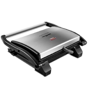 Grill Sanduicheira Press Inox Britania - 66702176 INFORMAÇÕES GERAISIdeal para o preparo de sanduiches, omeletes, ovos, etcChapas com revestimento antiaderenteChapa superior ondulada e inferior LisaTamanho da Chapa 22x14,5 cmLuz indicadora de funcionamentoChapa superior se ajusta conforme espessura do alimentoAlça de alumínio com toque frioAcabamento em aço inoxPés antiderrapantesTrava de segurançaGarantia: 1 anoINFORMAÇÕES ELÉTRICASPotência: 850WConsumo: 0,85 kWhVoltagem: 127V e 220VDIMENSÕESAltura: 8 cmLargura: 26 cmProfundidade: 22 cmPeso: 1,13 kgCor: PRETO/INOX - Voltagem: 220 VOLTS-