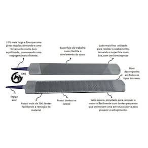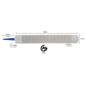 Grosa para casqueamento. Produto importado, Legítimo Mustad. A Grosa para casquear cavalo Heller Excel Legítimo da Mustad é fabricada em aço laminado, tratado termicamente para oferecer uma longa durabilidade e um fio consistente. Possui um lado mais grosso com dentes pequenos e afiados que removem o material com muita efeiciência e um lado mais fino que é utilizado para realizar o acabamento, deixando a superficie fina e com um bom aspecto. Desenvolvida para todos os tipos de cascos, apresenta excelente resultado. Face da Grosa: Um lado áspero que é projetado para remover o material facilmente com dentes de tamanho pequeno, que promovem uma estrutura aberta para prevenir o entupimento. Seu design particular torna esta grosa versátil para uma variedade de climas e qualidade de cascos. 10% mais larga e fina que uma grosa regular, tornando-a uma ferramenta muito bem equilibrada, promovendo uma raspagem mais eficiente. As superfícies de trabalho maiores tornam mais fácil o nivelamento do casco. A face de grosa possui um padrão concentrado com mais de 700 dentes que são menores em tamanho porém possui mais facilidade na remoção de material Face da Lima: Face da lima com corte Legítimo Heller, mais larga torna mais fácil o nivelamento e nivelamento do casco, deixando um acabamento mais liso. Mais larga, propiciando uma maior área de superfície Permite mínimo esforço e máxima eficiência Resultados positivos em várias condições Durante o grosamento da parede do casco, você pode precisar manter um ângulo maior do que quando utiliza-se uma grosa regular A grosa Heller é muito versátil, permitindo a remoção eficiente de material com pouco esforço, produto importado, diferenciado com excelente durabilidade. DIMENSÕES: Cumprimento: 36 cm Largura: 5 cm Espessura: 0,5 cm Tamanho da Espiga: 6,5 cm Peso: 660g NÂO ACOMPANHA CABO