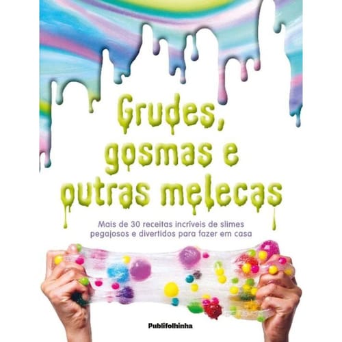 Os famosos slimes são massas viscosas feitas, em sua maioria, com ingredientes caseiros, como cola branca, bicarbonato de sódio e água boricada, e têm sido uma verdadeira febre no universo das crianças. A brincadeira se prova uma combinação de sucesso entre ciência e diversão, e em Grudes, gos- mas e melecas os pequenos leitores poderão soltar a criatividade e se divertir com mais de 30 opções pegajosas. São projetos descomplicados que utilizam ingredientes facilmente encontrados, baratos e seguros para a saúde todas as receitas que vão ao fogo ou micro-ondas pedem a ajuda e supervisão de adultos. A produção de cada uma das massas é detalhadamente descrita por meio de um passo a passo com fotos. Ao final, a imagem do slime concluído exibe o resultado, sua cor e consistência ideais. As crianças poderão entender a ciência por trás de criações como a Massa básica que, além de ser a receita principal, é também um fluido não newtoniano um líquido que não se comporta como os outros, de acordo com as explicações do cientista Isaac Newton , além de serem estimuladas a continuar a diversão baseadas nas variações propostas. Elas poderão criar as atraentes Gosma de ouro e o Slime-unicórnio; e os apetitosos Mingau do urso e a Gororoba pegajosa, pois, além dos slimes não-comestíveis, o título também traz opções que podem ser ingeridas deliciosas, além de intrigantes. Ao longo do livro são introduzidas instruções do uso adequado dos ingredientes, dicas de segurança, armazenamento e limpeza.