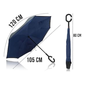 Guarda-chuva invertido com sistema inovador de abertura e fechamento ao contrário, ideal para evitar que você se molhe ao entrar e sair do carro ou de ambientes. Seu design inteligente mantém a parte molhada para dentro, evitando respingos e protegendo o interior do veículo. Pode ficar em pé sozinho, facilitando a secagem e o uso no dia a dia. Possui cabo ergonômico em formato de C, permitindo encaixe no braço e deixando as mãos livres. Fabricado com dupla camada de tecido impermeável, oferece proteção UV e alta resistência. Suas varetas são flexíveis e reforçadas, suportando ventos e chuvas fortes sem entortar. Leve, prático e fácil de transportar, é perfeito para quem busca conforto, durabilidade e funcionalidade.