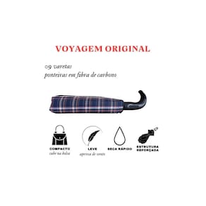 Modelo do guarda chuva portaria Voyagem sendo grande na sua abertura e pequeno para guardar.