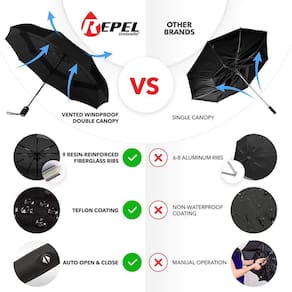 Guarda-chuva à prova de vento: projetado com uma cobertura dupla ventilada, nosso guarda-chuva preto resiste à inversão e resiste a fortes rajadas, mantendo você seco e protegido em qualquer clima