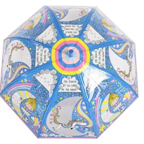 O Guarda-chuva Infantil Transparente Bailarina Azul da marca Fazzoletti é resistente, durável e abre automático, basta apertar o botão Ele possui um design transparente que permite que as crianças vejam claramente enquanto se mantêm secas em dias chuvosos.