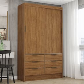 O Guarda-Roupa Sevilha com 02 Portas de correr, 2,00m de altura, 1,08m de largura e 0,45m de profundidade, combinado com 06 gavetas, 1 prateleira e 1 cabideiro, possibilita ao consumidor acomodar todas as roupas de maneira organizada e com maior visibilidade. As roldanas em aço e o trilho em alumínio potencializam o deslizar das portas. Acabamento da Prateleira: Pintura UV Escala de Brilho da Prateleira: Semi-Brilho Acabamento da Gaveta: Pintura UV Possui Organizador de Gaveta: Não Acabamento da Porta: Pintura UV Escala de Brilho da Porta: Fosco Ambiente Principal: Quarto codigo_ean: 7900288128645 Complexidade da Montagem: Média: pode ser montado por mais de uma pessoa e/ou necessite de maior conhecimento para montagem Cor: Cinamomo Cor do Produto: Cinamomo Cor Interna: Branco Escala de Brilho: Fosco Espessura da Estrutura (mm): 12 mm Espessura das Portas (mm): 12 mm Espessura das Prateleiras (mm): 12 mm Espessura do Fundo (mm): 3 mm Espessura do Fundo das Gavetas (mm): 3 mm Itens Inclusos: 01 Guarda-Roupas e Manual de Montagem Linha ou Coleção: Sevilha 2Pts Manual de Montagem e Instalação: https://product-hub-prd.madeiramadeira.com.br/263463747/documents/7079f2d6-793a-400f-9484-991b3a57557a287287240417454289103702.pdf Marca: Carioca Móveis Material da Gaveta: MDP/HDF Material da Porta: MDP Material da Prateleira: MDP Material Principal: MDP modular: Não Necessita Montagem: Sim Origem do Produto: Nacional Peso: 61,3 kg Peso Máximo por Gaveta: 5 kg Peso Máximo por Prateleira: 5 kg Possui Calceiros: Não Possui Espelho: Não Possui Pés: Não Possui Portas: Sim Possui Prateleiras: Sim Produto Montado: Sim Quantidade de Cabideiros: 01 Cabideiro Recomendações de Uso, Manutenção e Limpeza: Limpar com flanela ou pano macio seco, não utilizar produtos abrasivos, desengordurantes, álcool ou solvente. Não expor o produto diretamente à luz solar e à umidade. Sistema de Montagem: Prafusos e Cavilhas. Tipo de Corrediça da Gaveta: Metálica Simples Tipo de Dobradiça/Corrediça da Porta: Aço Tipo de Gaveta: Externa Tipo de Guarda-Roupa: Solteiro Tipo de Puxador da Gaveta: Externo Tipo de Puxador da Porta: Externo