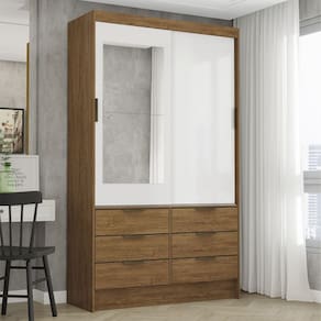 Guarda-roupa 02 Portas de Correr com Espelho 06 Gavetas Sevilha Cinamomo/Branco
