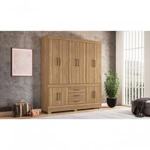 Feito em MDP, possui 3 gavetas, pés em PVC, 10 portas, 4 prateleiras internas e 2 cabideiros.